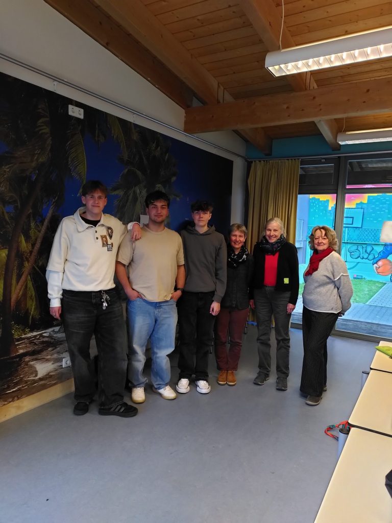 Le lundi 6 octobre 2025, Armelle, Brigitte et Gudi, membres du Cercle des amis de Navarrenx, ont rencontré des jeunes du Conseil municipal des jeunes de Rheinstetten. À cette occasion, ils ont réfléchi ensemble à des moyens de toucher les jeunes de Rheinstetten afin de les sensibiliser au jumelage avec Navarrenx.